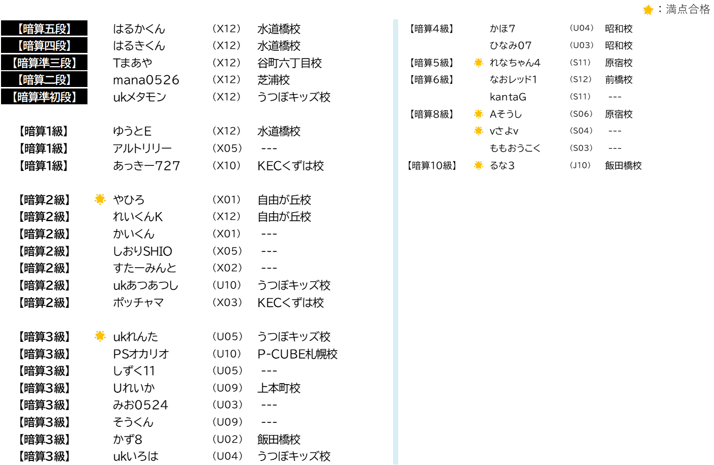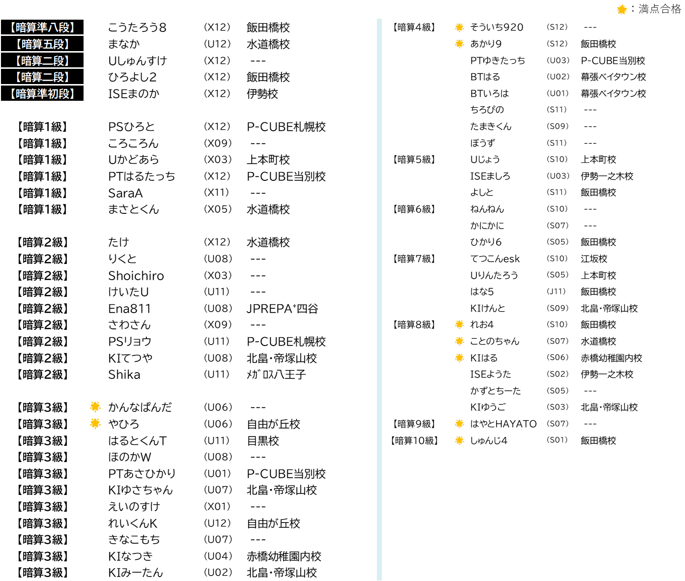 2025年12月 暗算検定 合格者