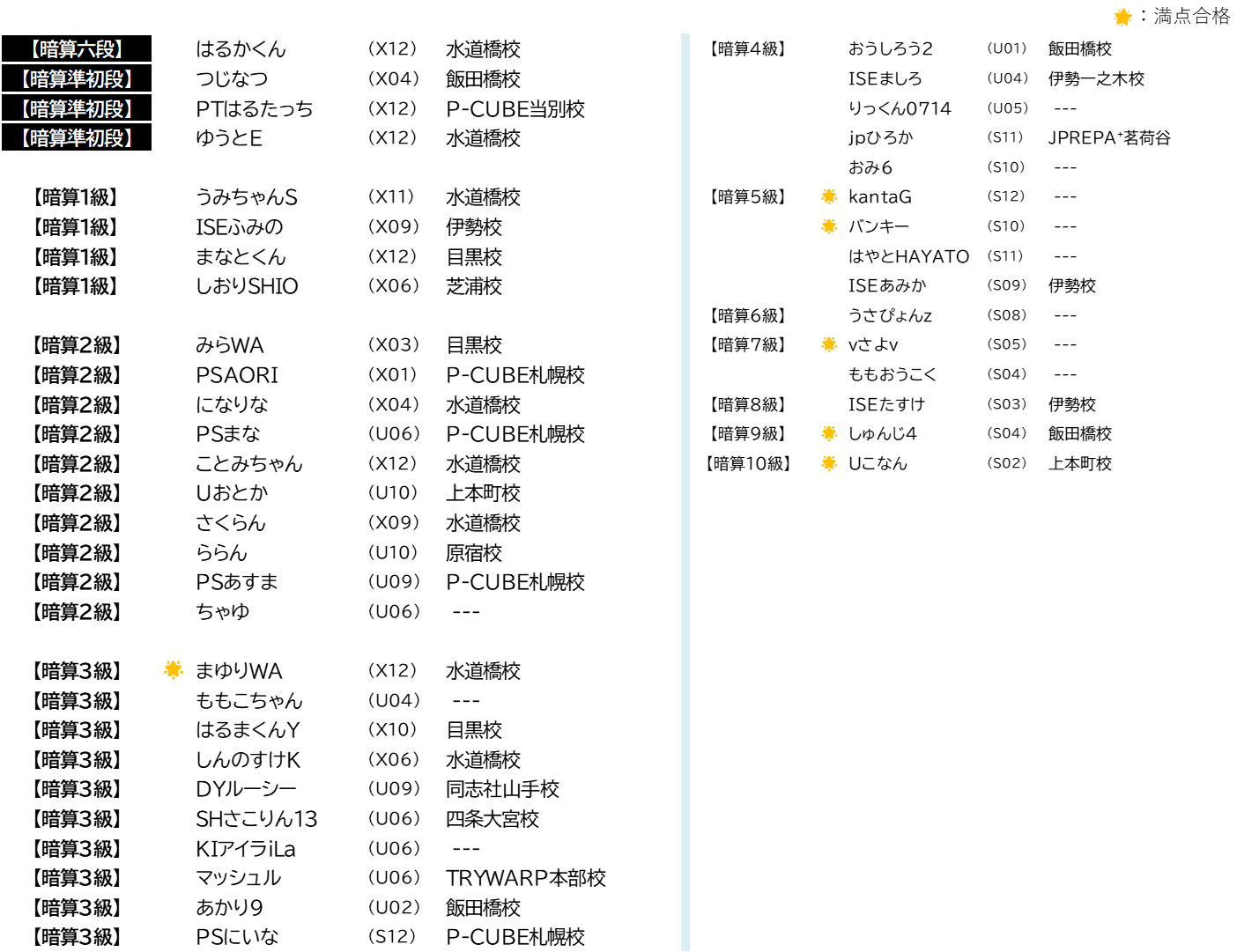 2025年6月 暗算検定 合格者